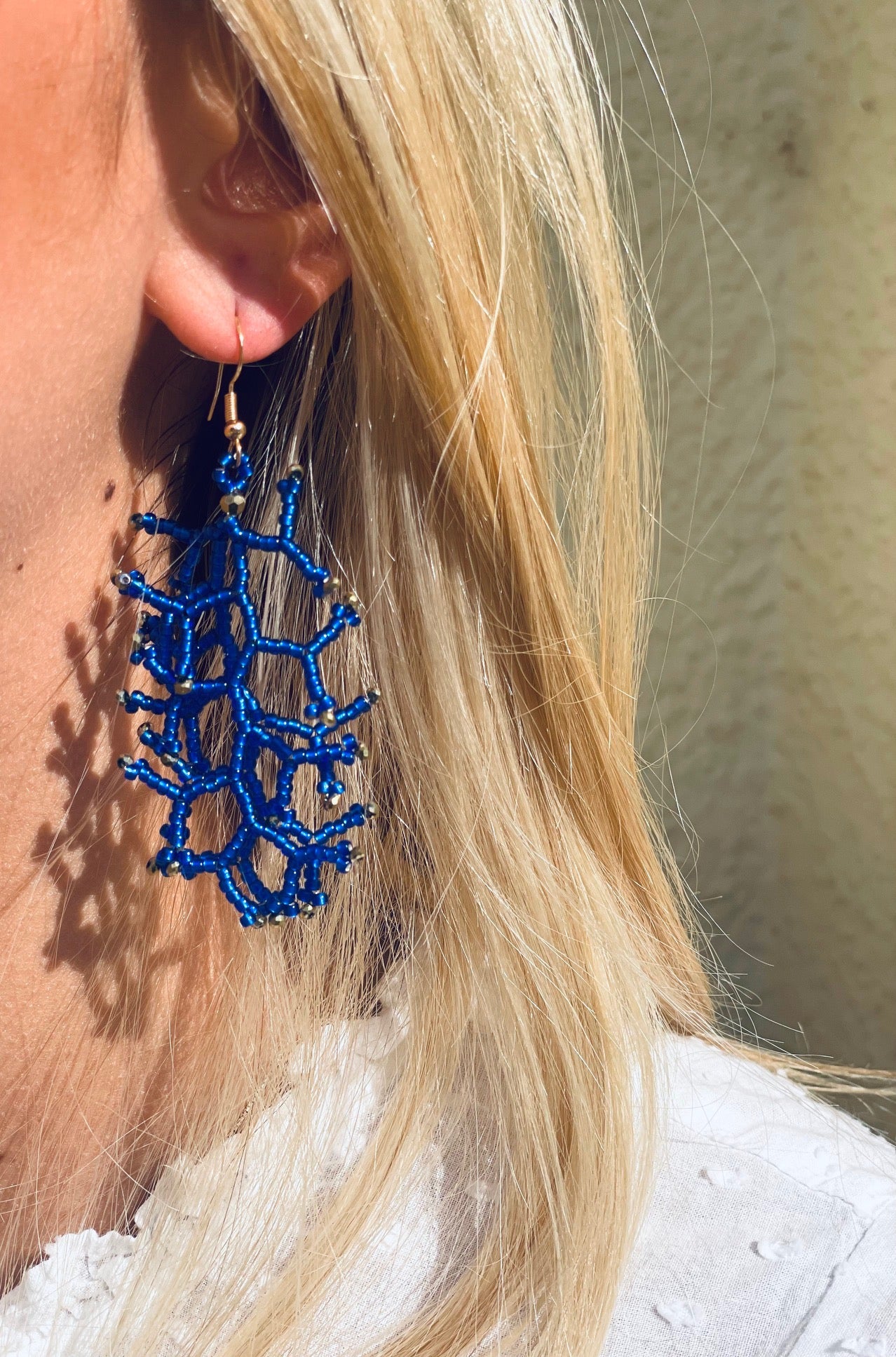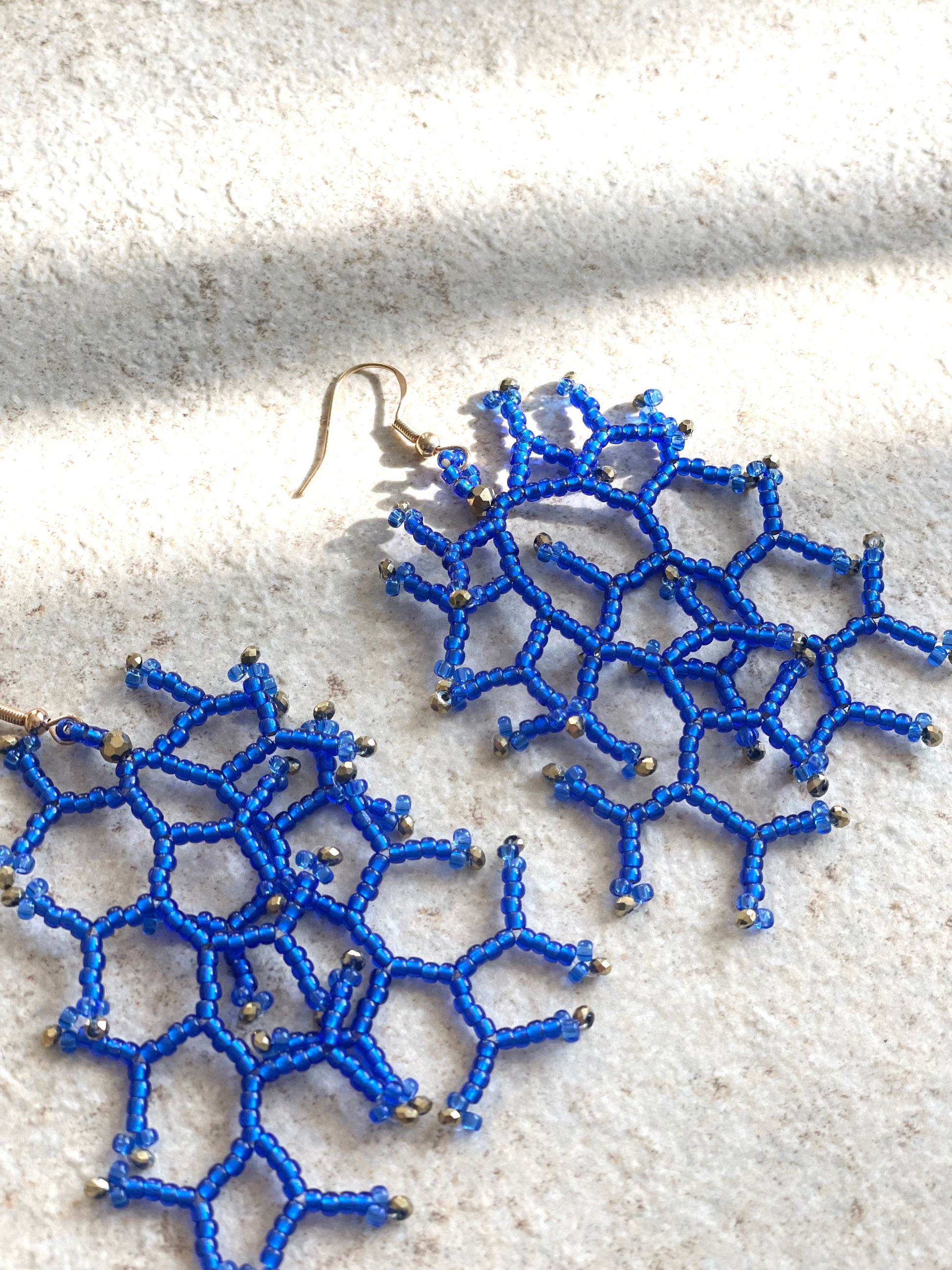 Material: Rocailles dark sapphire silver lined, gold firepolished and facettiert.