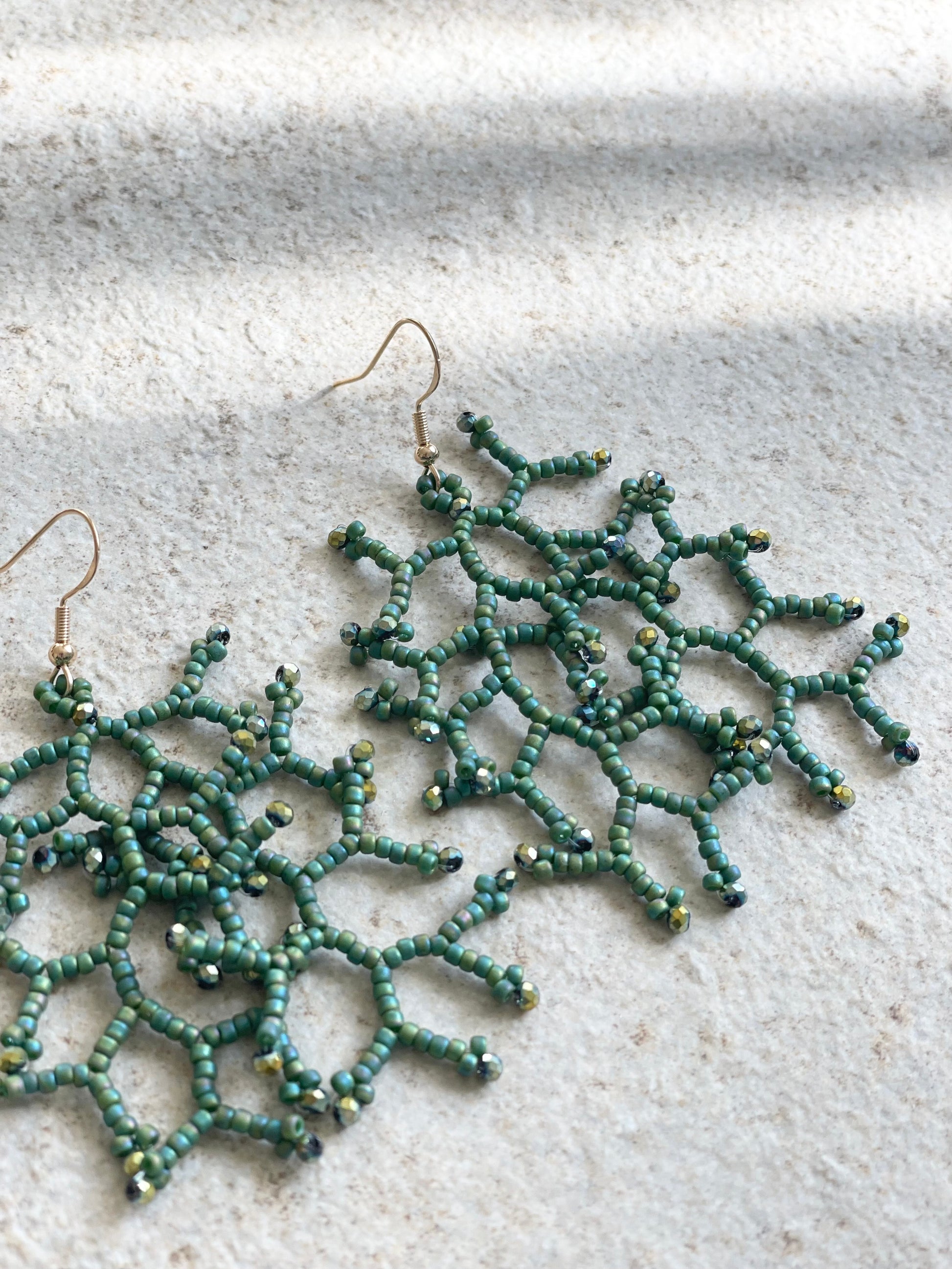 Material: Rocailles semi glazed clover green, gold/blue firepolished and facettiert.